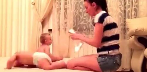Ninguém estava à espera… nem a mãe nem a própria menina, mas as reações foram diferentes: a progenitora desatou a rir à gargalhada; a pequenina assustou-se e chorou!