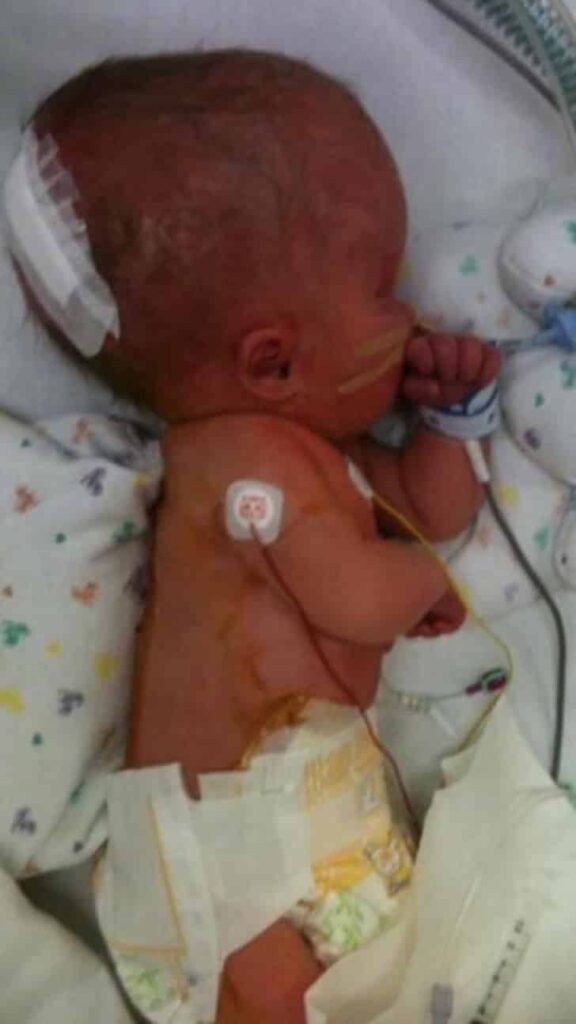 Depois dos primeiros exames, a equipa médica comunicou-lhe que, se o seu bebé chegasse a nascer, provavelmente não sobreviveria mais do que um ou dois dias. O menino sofria de hidrocefalia e, consequentemente, além de ter uma cabeça extremamente grande, quase não possuía cérebro.