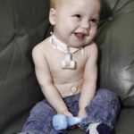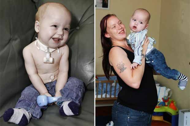 Keelan esteve 2 semanas no hospita com uma luta constante entre problemas respiratórios, digestivos e cardiacos. Num determinado dia Keelan esteve “morto” durante 20 minutos e teve 7 ataques cardiacos. Mas graças a deus sobreviveu e hoje está muito bem de saude após uma cirugia. O pequeno Keelan tem de ser alimentado por um tubo que esta directamente ligado ao estomago, mas podem ver pelas fotos que é um bebê feliz 🙂
