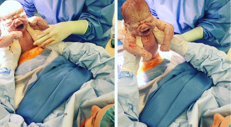 Mãe puxa bebé com as próprias mãos durante cesariana