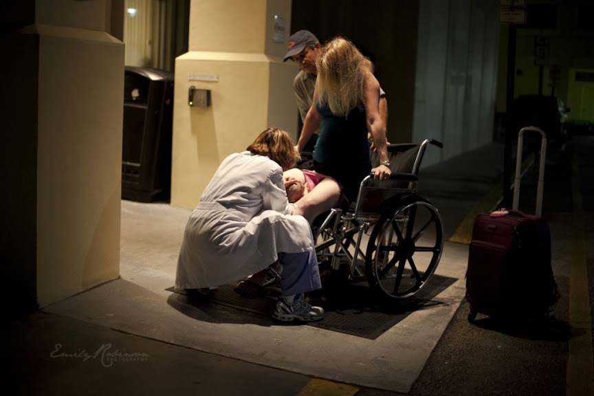 No entanto, há que saber lidar com os imprevistos, certo? Foi exatamente o que teve de fazer a fotógrafa norte-americana Amy Cavaretta, que foi mãe da sua segunda filha sentada numa cadeira de rodas (à entrada do centro hospitalar), com uma amiga a registar o momento em fotografia.
