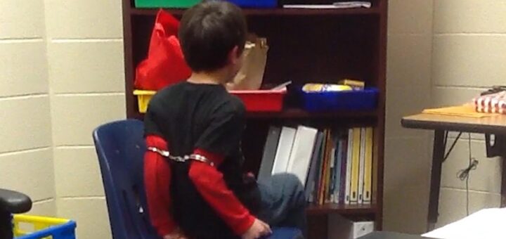 De acordo com as informações que obtivemos, o garoto, que sofre de Transtorno de Déficit de Atenção e Hiperatividade (TDAH) foi punido após se recusar a seguir ordens da professora. Ele tentou sair da sala da direcção, e agredir Kevin Sumner (xerife), que o prendeu com as algemas.