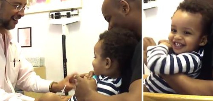 Que médico fantástico, a maneira como ele lida com esta criança é fantástica! Ele consegue distrair por completo o menino, brinca com ele e com as seringas! Ele consegue distrair o menino do que...